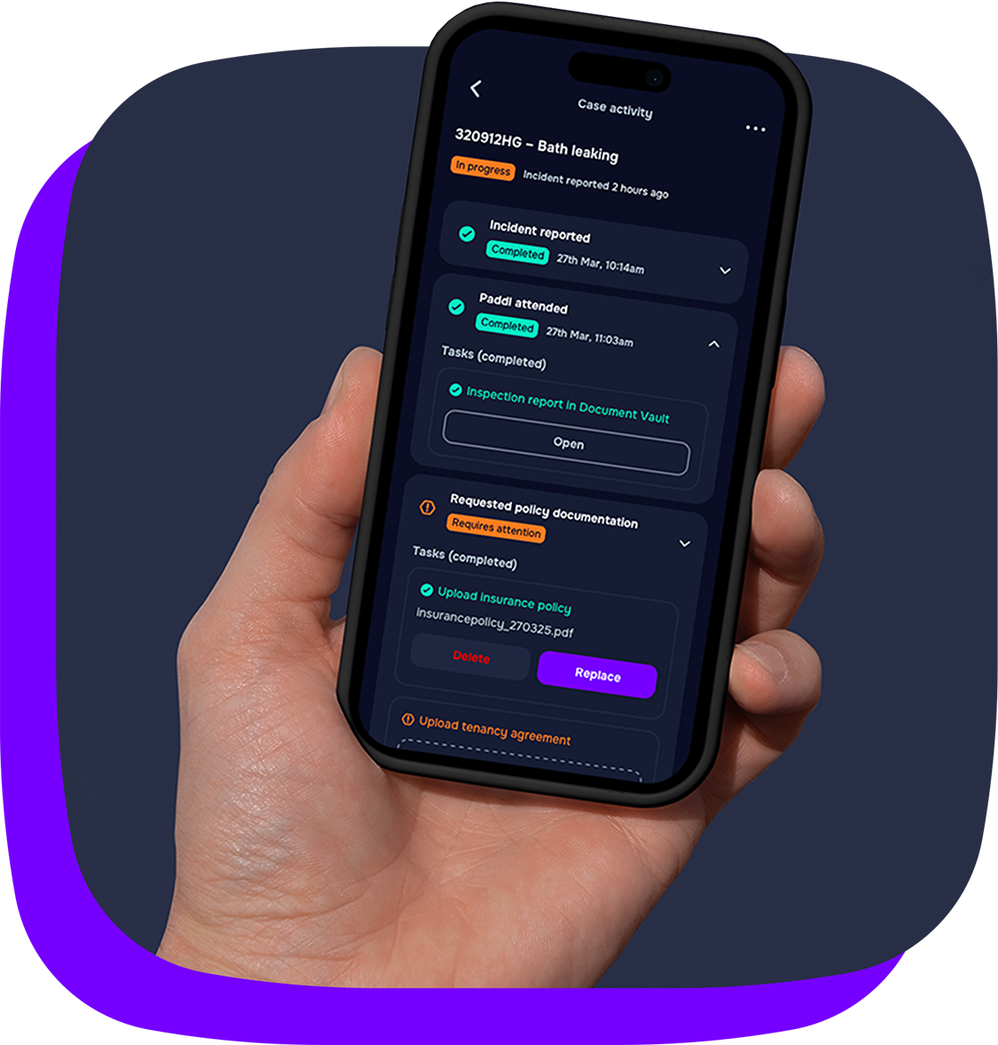Using your Paddl app you or your tenant uploads photos and/or videos of the damage, letting us know what has occurred.